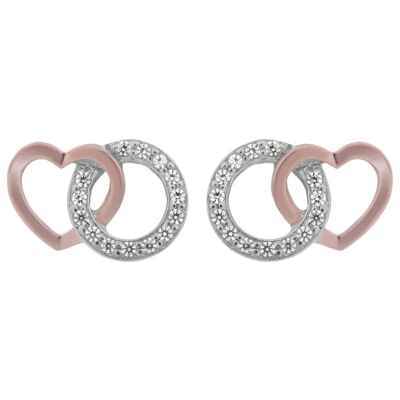 Introducing Orphelia® 'Ely' Women's Sterling Silver Stud Earrings - Silver/Rose ZO-7286
