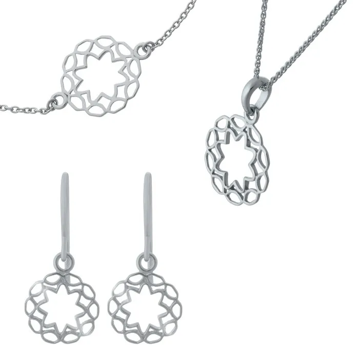 Orphelia® 'Jasmine' Women's Sterling Silver Set: Bracelet + Earrings + Necklace - Silver SET-7076