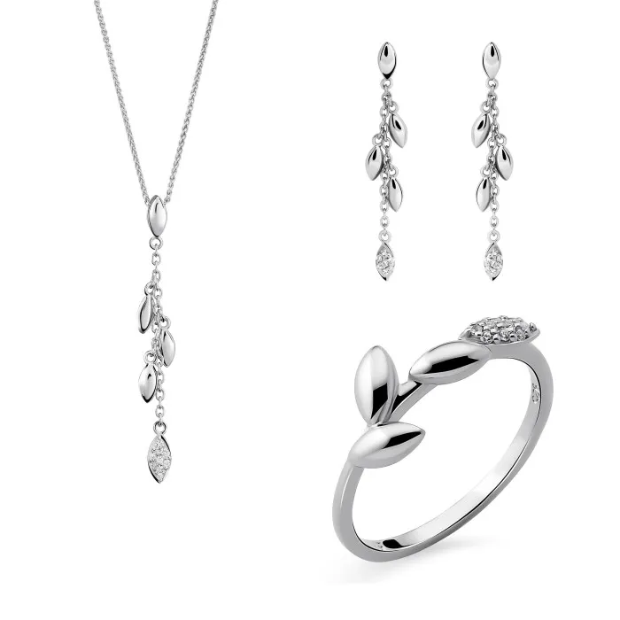Introducing Orphelia® 'Loana' Women's Sterling Silver Set: Necklace + Earrings + Ring - Silver SET-7505