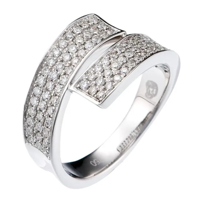 Indulge in the exquisite elegance of the Orphelia® Women's Whitegold 18C Ring - Silver RD-3373, a stunning piece that embodies timeless luxury and sophistication. This captivating ring is crafted from 18-carat white gold, combining durability with an ethereal shine that enhances its elegant design. The ring showcases an asymmetrical shape, which adds a contemporary touch to its classic beauty. With a total diamond weight of 0.52 carats, the ring features an impressive arrangement of 90 sparkling diamonds, each set with meticulous precision in a pavé setting, creating a breathtaking array of brilliance that is sure to catch the eye. Every diamond on this piece boasts a clarity of small inclusions, certifying the quality and allure of each gem. The bright white hues of the diamonds, graded at White/Wesselton (H), offer a mesmerizing contrast against the warm tones of the white gold. This ring is not just a piece of jewelry; it is an expression of grace, making it the perfect accessory for any occasion—be it a formal gathering or an intimate evening out. Designed for women who embrace sophistication and individuality, this ring serves as a timeless statement piece that can be cherished for generations. The 1 cm width ensures comfortable wear without compromising on style, making it an ideal choice for those who want to add a touch of refined luxury to their collection. Whether gifted for a special occasion or chosen for oneself, this beautiful ring reflects the unique spirit and elegance of the wearer.