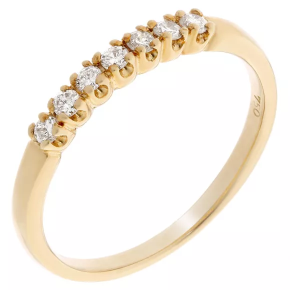 Embrace understated elegance with the Orphelia® Women's Yellow Gold 18C Ring - Gold RD-3708. This exquisite piece embodies both sophistication and timeless appeal, made with the finest yellow gold of 18 carats. Perfectly designed for the modern woman, this ring flaunts a classic aesthetic that transcends time and trends. Its delicate structure, weighing just 2.20 grams, ensures comfort while making a bold statement of style. The intricately crafted Ajourfassung setting enhances the brilliance of seven stunning diamonds, contributing a total diamond weight of 0.2 carats. These white diamonds, characterized by small inclusions and graded H for color, exude a soft sparkle that catches the light beautifully. The ring’s width is elegantly set at 0.2 cm, making it a refined accessory for any occasion, whether worn on its own for a subtle hint of glamour or stacked with other rings for a modern look. Orphelia's commitment to quality is evident in every detail, ensuring you possess a piece of jewelry that not only enhances your beauty but also stands the test of time. This ring is not just an adornment; it's a reflection of your personality, a blend of luxury and artistry that defines you.