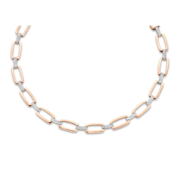 This exquisite Orphelia® Women's Sterling Silver Necklace - Silver/Rose ZK-7209 effortlessly embodies elegance and sophistication. Designed to adorn the neck with grace, this necklace is crafted from 925 sterling silver, ensuring a fantastic blend of durability and shine. The enticing mix of silver and rose metal tones creates a stunning visual contrast, captivating anyone who lays eyes on it. With a length of 43 centimeters, this necklace is perfectly suited for both formal occasions and casual outings, allowing you to express your unique style at any moment. The detail of the necklace reaches new heights with the white zirconium gemstones, placed strategically to enhance the overall beauty of the design. These gemstones are not only a symbol of luxury but also add a touch of sparkle, illuminating your neckline with every movement. The fold-over clasp with safety ensures that this precious piece stays securely in place, allowing you the freedom to enjoy your day without worrying about your jewelry. Whether you are gifting this necklace to a loved one or treating yourself to something special, it undoubtedly serves as an exquisite statement piece, standing as a testament to your refined taste. Embrace the charm that this necklace brings to your collection, as it is not merely an accessory, but a reflection of elegance and class that will enhance any outfit.