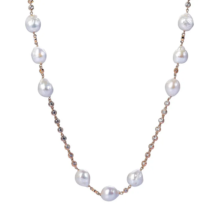 The Orphelia® Women's Sterling Silver Necklace - Rose ZK-7462 is an exquisite expression of femininity and elegance, masterfully crafted for the modern woman. Designed from high-quality 925 sterling silver, this necklace radiates a soft rose hue, making it a versatile piece that beautifully complements a variety of outfits. The 92-centimeter length allows it to drape gracefully around the neckline, providing an alluring touch whether worn alone or layered with other jewelry. Each detail of this necklace speaks of quality and care. Adorned with freshwater-cultured pearls, the necklace showcases a striking baroque shape that adds a unique character, ensuring that no two pieces are ever alike. The contrasting shimmer of zirconium stones further elevates its charm, creating a captivating sparkle that enhances the overall design. This piece is perfect for special occasions or for adding a touch of sophistication to your everyday look. Its lightweight design, weighing just 62.40 grams, ensures comfort throughout the day, while the absence of a clasp provides a sleek and uninterrupted flow. The combination of delicate pearls and the warm tones of rose silver makes this necklace not just an accessory, but a must-have statement piece that reflects a woman's inner beauty and grace.
