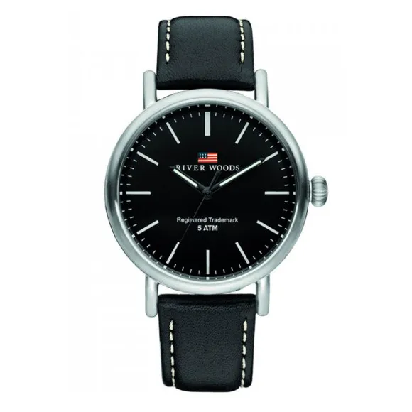 Introducing the River Woods® Analogue 'Hudson' Men's Watch RW420023, a beautifully designed timepiece that embodies both style and functionality. Crafted with precision, the watch features a sophisticated black dial that perfectly contrasts with its sleek silver stainless-steel case. With a diameter of 42 mm and a thickness of 9 mm, the round case is both robust and elegant, showcasing an understated appeal suitable for various occasions. Whether you are at a business meeting or enjoying a leisurely day out, this watch will complement your outfit seamlessly. Powered by reliable quartz movement, the Hudson watch ensures accuracy and punctuality, giving you confidence in its functionality. The watch band, made from premium leather in striking black, is designed for comfort and longevity, measuring 21 cm in length and 19 mm in width. The classic buckle clasp ensures a snug fit on your wrist, ready to accompany you in every step of your day. The Hudson watch is also engineered to withstand the rigors of daily wear with a water resistance of 5 bars, making it suitable for swimming and shallow diving. The mineral glass dial window protects the watch face from scratches and provides a clear view of the time at all times. With its perfect blend of professional design and reliable craftsmanship, the River Woods Analogue 'Hudson' Men's Watch is the ultimate accessory for the modern gentleman.Shop River Woods RW420023 at Ormoda