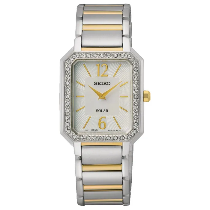 Seiko® Analogue Women's Watch SUP466P1 is the perfect accessory for any elegant ensemble. This dress watch is designed for the modern woman who appreciates both style and sophistication. With a lightweight rectangular case made from durable stainless steel, it boasts a refined multicolour finish that captures the light beautifully, giving it a touch of luxury. Measuring 30mm in case length and just 6mm thick, it is designed for comfort and ease of wear, making it ideal for those who are always on the go. The stunning mother-of-pearl dial harmonizes effortlessly with the exquisite stone settings, adding a delightful pop of elegance to your wrist. The mineral glass window not only protects the dial but also enhances visibility, allowing you to captivate attention wherever you go. Its exquisite band is crafted from stainless steel in matching multicolour tones and stretches to 19cm in length with a width of 17mm. Featuring a fold-over push-button clasp, it ensures both security and ease. With a water resistance of up to 3 bars, it is designed to withstand everyday splashes while maintaining its pristine appearance. Elevate your style with this beautiful watch that marries functionality and luxury seamlessly.Shop Seiko SUP466P1 at Ormoda