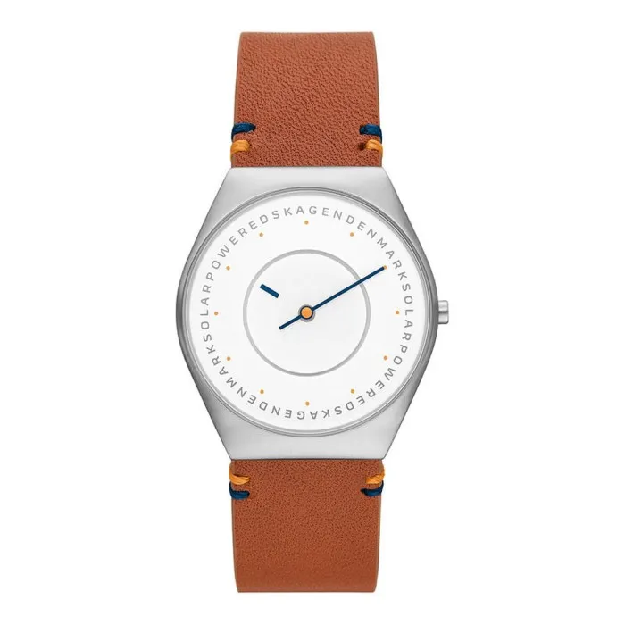 Introducing the Skagen® Analogue 'Grenen Solar Disc' Men's Watch SKW6872, a sophisticated piece that embodies both style and functionality. Designed for the modern man, this watch is the perfect accessory for any occasion, whether it's a business meeting or a casual outing. Its elegant quartz movement ensures accuracy, while the durable construction speaks to Skagen's commitment to quality. The watch features a round case made from stainless steel in a striking silver tone, measuring 37mm in diameter and only 7mm in thickness, making it a comfortable fit for your wrist. The pristine white dial enhances visibility, protected by a robust mineral glass window, ensuring you can read the time at a glance. The Grenen Solar Disc is not just about aesthetics; it is crafted for practicality. The elegant brown leather band, measuring 22mm in width and 21cm in length, complements the silver case beautifully, secured with a classic buckle clasp. With a water resistance of up to 3 bars, it suits various lifestyle needs, whether you're at the beach, in the office, or out socializing. Weighing in at only 36 grams, it’s light enough to wear all day without discomfort. The attention to design detail is evident, from the clean lines to the balanced proportions. You can trust that when you purchase this watch, you are investing in a classic piece that enhances your personal style while offering robust functionality. The Grenen Solar Disc is more than just a timepiece; it’s a statement about your taste and lifestyle choices, setting you apart as a connoisseur of fine craftsmanship.Shop Skagen SKW6872 at Ormoda