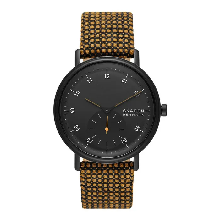 Introducing the Skagen® Analogue 'Kuppel' Men's Watch SKW6895, a masterpiece that encapsulates effortless style and functionality. Crafted for the modern man, this watch exudes a casual yet refined elegance that fits perfectly in any setting. The sleek, black 44mm stainless steel case is not only robust but also enhances durability, making it an ideal companion for life's adventures. Protected by a sturdy mineral glass dial window, this timepiece showcases a minimalist black dial that ensures clear visibility, while its analogue display keeps time in a reliable manner. The 'Kuppel' features a comfortable 21cm brown fabric band that complements the striking case color, creating a harmonious blend of sophistication and casual charm. The buckle clasp ensures a secure fit, allowing you to wear it with confidence throughout your day. With a water resistance of up to 5 bars, this watch is designed to withstand splashes, adding to its versatility. Weighing in at just 66 grams, it is light enough for everyday wear without sacrificing quality or style. This watch is not just an accessory; it's a statement piece that reflects your unique taste and sense of style. Embrace the charm of the Skagen 'Kuppel' and elevate your watch collection.Shop Skagen SKW6895 at Ormoda