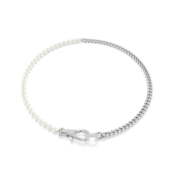 Embodying timeless elegance with a modern twist, the Swarovki 'Dextera' Women's Base Metal Necklace is a true testament to the creative prowess and exquisite craftsmanship that Swarovski is renowned for. This silver necklace, boasting a length of 46cm, drapes gracefully around the neck, adding a touch of sophistication to any ensemble. Adorned with Swarovski Crystals, the Dextera necklace features a 1.3cm width that captures and reflects the light, creating mesmerizing sparkles that resonate with the feminine and professional woman of today. Complemented by the shimmering White hue of the jewel gems, it brings a subtle yet definitive statement of style and elegance. Whether worn for a day at the office or a night out on the town, this Swarovski creation elevates the definition of jewelry and allows the wearer to showcase a polished and inviting personal style. The necklace's incorporation of Swarovski Crystal Pearls adds to its allure, offering a harmonious blend of traditional charm and contemporary flair. 5689634Shop Swarovski 5689634 at Ormoda