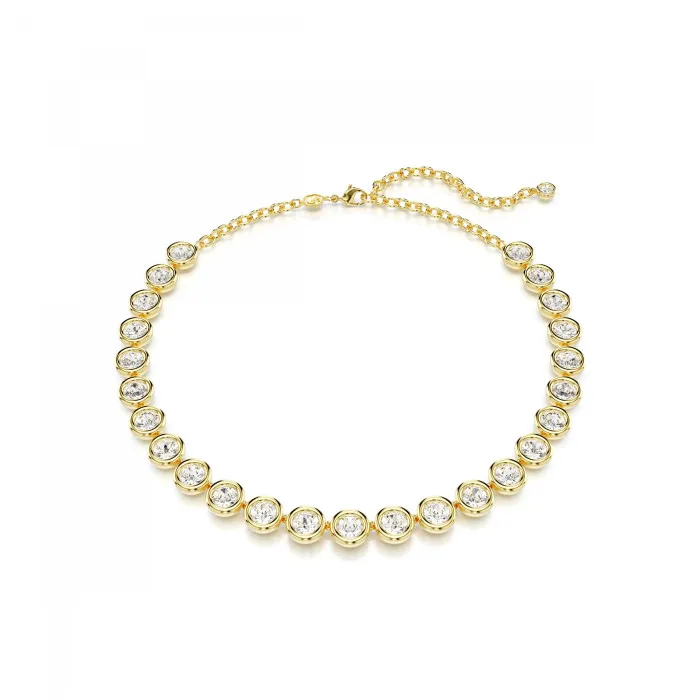Adorning one's self with Swarovski 'Imber' Women's Necklace in Gold is not just an act of adding brilliance to an outfit; it's an embrace of a heritage rich in craftmanship and design. With its delicate charm and a lineage of quality, this necklace 5682585 offers a timeless elegance to your collection. An intimate companion to your daily ensemble, our Swarovski necklace crafted in lustrous gold, with a pendant width of 1cm and length of 45cm, invites admiration and speaks volumes of your exquisite taste. The necklace, embellished with the pristine Swarovski-Crystal in the purest shade of white, captures light and attention alike. As you step into the spotlight, the gold metal color of the necklace harmonizes with your sartorial choices, making for a statement that is both finesse-filled and striking. Immerse in the allure of the Imber model - your key to unlocking a world where jewelry does not just accessorize, but accentuates one's persona.