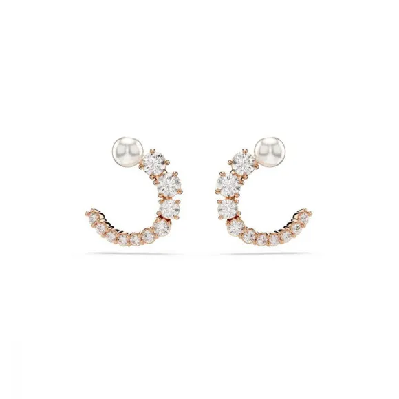 Swarovski, an Austrian marvel, has illuminated the world of fashion and jewelry with its exquisite crystal craftsmanship since 1895. Founded by Daniel Swarovski, the company's dedication to innovation, precision, and artistry has set a benchmark for crystals, making 'Swarovski' a codeword for glamour and elegance. The brand's storied history encompasses a journey from the stages of Broadway to the silver screen, bedazzling iconic looks and captivating audiences worldwide. Swarovski's philosophy, 'to constantly improve what is good', resonates in their commitment to sustainability and inspiring design, ensuring each crystal tells a story of passion and brilliance.Introducing Swarovski® 'Matrix' Women's Gold Plated Metal Hoop Earrings - Rose 5692264