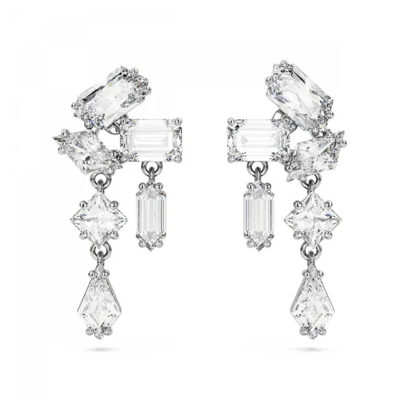 Swarovski is a celebrated brand in the world of watches and jewelry, renowned for its exquisitely crafted products that exude elegance and sophistication. The brand's creations successfully capture the enchanting allure of crystals and gems, resulting in accessories that effortlessly enhance any ensemble. Swarovski blends timeless style with modern design elements to create pieces that are testament to the brand's exceptional artistry and attention to detail. Synonymous with luxury and elegance, this brand caters to the tastes of women who appreciate the finer things in life.Introducing Swarovski® 'Mesmera' Women's Base Metal Drop Earrings - Silver 5665825