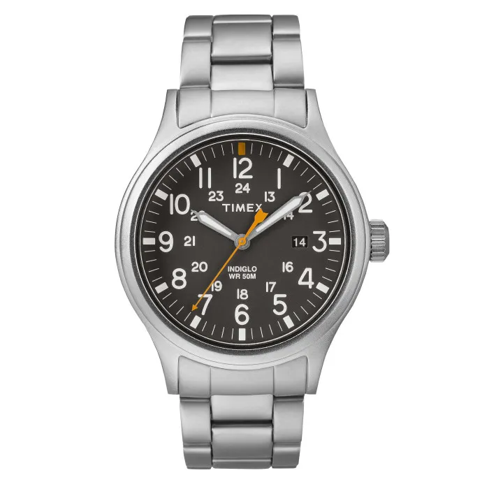 The Timex® Analogue 'Allied' Men's Watch TW2R46600 is a perfect blend of functionality and rugged style, ideal for the modern man. Designed by Timex, a brand renowned for its precision and reliability, this watch embodies the company’s commitment to quality craftsmanship. With an impressive case diameter of 40mm and a thickness of just 10mm, this piece boasts a robust yet sleek profile that sits comfortably on the wrist. The dial features a striking black color, complemented by luminous hands and markers that ensure readability in various lighting conditions. The mineral glass window not only offers clarity but also provides durability, making it resistant to scratches. The date function enhances practicality, keeping you organized and on schedule. The stainless steel case adds an element of sophistication, reinforced by a matching stainless steel band that features a fold-over clasp with a push-button mechanism for secure wear. Measuring 21cm in length and 19mm in width, the watch band dynamically complements the case while offering a touch of elegance to your ensemble. With a water resistance rating of 5 ATM, this timepiece is ready for everyday adventures, from casual outings to professional settings. The quartz movement ensures precise timekeeping, making it a reliable companion for all occasions. Whether you are dressing up or keeping it casual, the Timex® Analogue 'Allied' is designed to fit seamlessly into your lifestyle and elevate your look.Shop Timex TW2R46600 at Ormoda