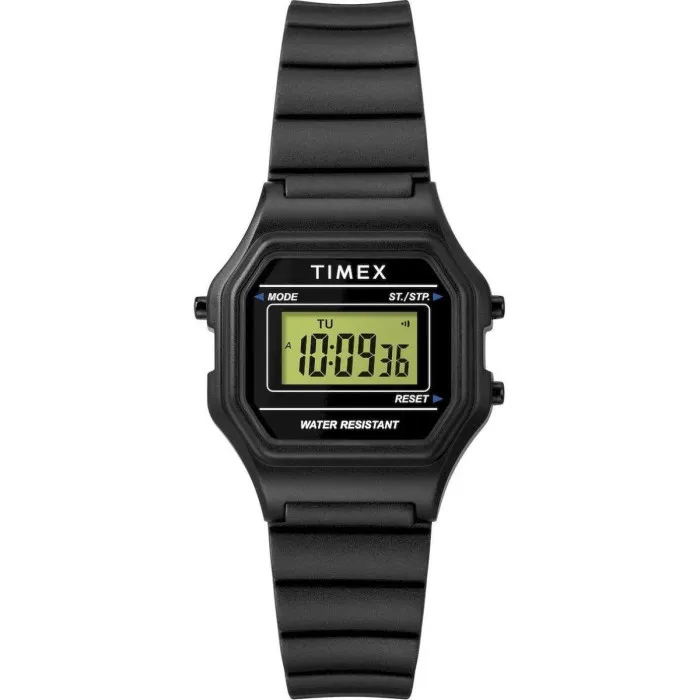 The Timex Digital 'Classic Digital' Women's Watch TW2T48700 is a stunning blend of functionality and style, designed for the modern woman. Its casual design makes it perfect for everyday wear or special occasions alike. Crafted from lightweight resin, this watch case has a sleek square shape that measures 26mm in length and width, while keeping a profile thickness of just 9mm. The black case provides a sophisticated backdrop for the digital display, which is both practical and easy to read, ensuring you are always in tune with your schedule. The durable mineral glass dial window protects the watch face from scratches and regular wear, maintaining its pristine appearance over time. The black plastic band not only complements the watch case beautifully but also offers comfort and flexibility with a length of 19cm. Measuring 14mm in width, the band features a secure buckle clasp, designed for easy fastening and removal. This timepiece is equipped with a day-date calendar function, allowing you to stay organized effortlessly. With an ATM rating of 3 bars, this watch is resilient against splashes, making it ideal for everyday activities. Weighing only 15 grams, the Timex Digital 'Classic Digital' Women's Watch is both light and unobtrusive, ensuring it won't weigh you down. If you appreciate a beautiful combination of quality, style, and practicality in a watch, this timeless piece is waiting to accompany you wherever you go.