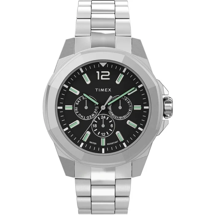 The Timex® Multi Dial 'Essex Avenue' Men's Watch TW2U42600 is a striking blend of style and functionality, designed specifically for the modern man who appreciates both sophistication and practicality. Crafted with a robust stainless steel case and a sophisticated silver tone, this timepiece is more than just an accessory; it’s a statement. The 45mm round case, with a thickness of 12mm, ensures that it sits comfortably on the wrist while exuding a solid presence. The black dial features a unique multi-dial display, combining elegance with the ability to keep you informed at a glance. Additionally, this watch is equipped with a day-date calendar feature, enhancing its practicality for everyday wear. This timepiece is powered by reliable quartz movement, ensuring precise timekeeping you can count on. The mineral glass window offers durability while protecting the striking dial from scratches. The stainless steel band, which measures 21cm in length and 22mm in width, adds a touch of refinement and can easily be secured with its fold-over push button clasp. With a water resistance of up to 5 bars, this watch is well-suited for various occasions, from casual outings to more formal settings. Weighing in at just 176 grams, the Timex Essex Avenue provides not only style but also comfort, making it an excellent companion for any man seeking versatility in his accessories.