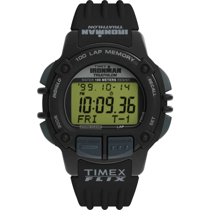 Timex stands as a hallmark of durability and innovation in the realm of watchmaking. With a rich history dating back to 1854, the brand has perfected the art of crafting timepieces that not only prioritize functionality but also embody style. Timex has continually pushed boundaries, integrating cutting-edge technology with classic designs to cater to the modern wearer. Each watch is a testament to their commitment to quality, making them well-suited for active lifestyles and everyday adventures. The brand’s focus on precision and resilience has earned them a loyal following, particularly among those who appreciate a great mixture of form and function. Timex is synonymous with versatility and reliability, making their watches an essential accessory for men who demand excellence in every aspect of their lives. The Timex® Digital 'Ironman Flix' exemplifies this ethos, merging practicality with modern aesthetics, perfect for the man on the go.Introducing Timex® Digital 'Ironman Flix' Men's Watch TW5M63000