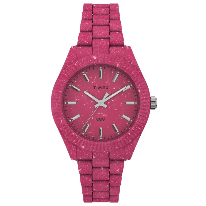 Introducing the stunning Timex® Analogue 'Legacy Ocean' Women's Watch TW2V77200, a true embodiment of elegance and functionality. This exquisite timepiece, designed for the modern woman, boasts a pleasing pink color palette that beautifully complements any outfit. With a round case made of durable resin and a 42mm diameter, this watch presents an eye-catching visual appeal, while also ensuring comfort and reliability. The watch's thickness of 12mm enables it to sit gracefully on the wrist, making it a perfect accessory for both casual and formal occasions. The dial features a mineral glass window to protect against scratches and ensure longevity, while the clear analogue display allows for easy readability at a glance. Each timepiece is powered by a precise quartz movement, guaranteeing that you’ll always be on time. The 19cm plastic watch band, also in a charming pink hue, provides comfort and flexibility, equipped with a fold-over clasp featuring a push button for effortless adjustment. With a lug-to-lug height of 50mm and a band width of 19mm, this watch is designed to fit comfortably on any wrist size. For those who love the sea or simply enjoy a splash of water, this watch is rated for 3 ATM water resistance, allowing for everyday wear without the worries of moisture damage. Whether you’re heading to a picnic or a casual outing, the Timex® Analogue 'Legacy Ocean' Women's Watch TW2V77200 is the ideal companion that echoes the spirit of adventure and a laid-back lifestyle.Shop Timex TW2V77200 at Ormoda