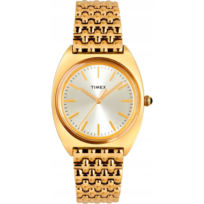 The Timex® Analogue 'Milano' Women's Watch TW2T90400 is an elegant piece that seamlessly mixes sophistication with functionality. Crafted with attention to detail, this exquisite timepiece is perfect for the modern woman who appreciates both style and reliability. The round case, made of durable stainless steel, boasts a radiant gold hue that catches the eye without being overly flashy. With a diameter of 33mm and a thickness of just 9mm, it offers a dainty and refined silhouette that complements any wrist. The gold dial, protected by mineral glass, offers a beautiful backdrop for the sleek hands and markers, ensuring readability while maintaining a touch of elegance. The watch operates on quartz movement, known for its precision, guaranteeing you stay punctual in style. Designed with your daily needs in mind, the watch withstands water pressure up to 5 bars, making it suitable for everyday wear, whether at a classy lunch or a more casual outing. The gold stainless steel band, measuring 19cm in length and 17mm in width, adds a luxurious touch. The deployment clasp ensures a secure fit, allowing for easy on-and-off without compromising on style. The overall weight of 87 grams contributes to its comfortable wearability, making it an ideal accessory for any occasion. Whether worn alone or paired with other jewelry, the Timex® Analogue 'Milano' Women's Watch is a versatile addition to any collection, perfect for enhancing your personal style. Shop Timex TW2T90400 at Ormoda