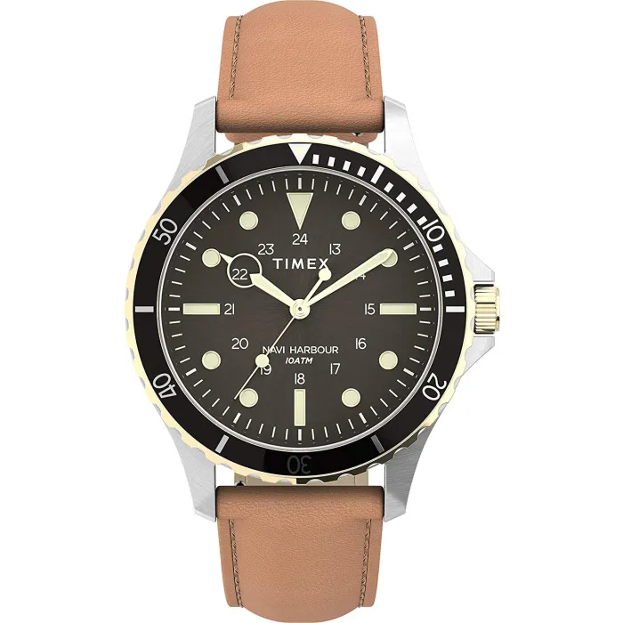 The Timex® Analogue 'Navi' Men's Watch TW2U55600 embodies a harmonious blend of functionality and style, crafted specifically for the modern man who seeks adventure. Featuring a robust round case made of premium stainless steel, this watch is not only designed for durability but also offers versatile aesthetics with its multicoloured finish. The black dial, protected by mineral glass, presents a striking contrast to the intricate detailing of the watch, ensuring legibility and ease of use even in demanding conditions. The turnable bezel adds a practical element, allowing for easily tracking elapsed time - a quintessential function for divers and water enthusiasts.Shop Timex TW2U55600 at Ormoda