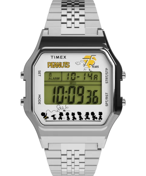Timex has a rich legacy of creating timeless timepieces that combine functionality with style since its inception. Known for its durability and innovative approach, Timex excels in offering quality watches that reflect the spirit of adventure. The brand pays homage to classic designs while infusing them with modern technology, resulting in unique pieces that tell a story. Timex strongly believes in crafting watches that can withstand the test of time, both in terms of style and performance. This commitment to excellence ensures that every watch is not just a tool for telling time but also a statement of individuality.Introducing Timex® Digital 'Peanuts Timex 80' Men's Watch TW2Y20000
