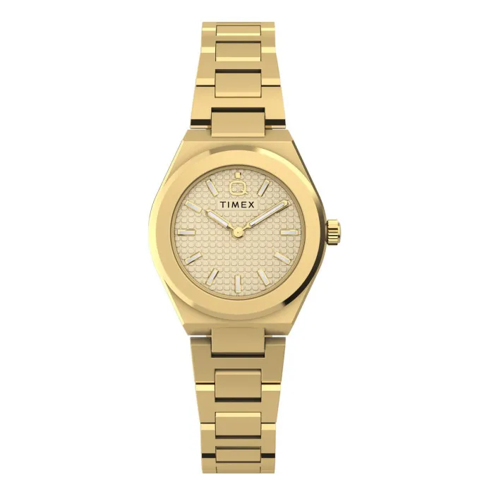 Discover the embrace of timeless elegance with the exquisite Timex® Analogue 'Q Timex Continental' Women's Watch. This charming piece epitomizes sophistication through its 24mm round watch case crafted from durable stainless steel. The opulent gold color radiates a luxurious allure, enhancing any outfit, whether it's a casual day out or a special evening event. With a delicate thickness of just 8mm, this watch offers a subtle yet impactful presence on the wrist. The sophisticated gold dial is protected by mineral glass, ensuring durability while amplifying the elegance of its design. An analogue display gracefully conveys the passage of time, while the reliability of its quartz movement brings peace of mind. This watch is not just a functional accessory; it's a captivating statement piece that speaks of your refined taste. The gold stainless steel band extends to an adjustable 19cm, offering comfort and style with every wear. The fold-over clasp with a push-button ensures a secure fit, making it easy to adorn while maintaining security throughout the day. With a water resistance of 5 bars, the Q Timex Continental is ready to accompany you on any adventure. Allow this watch to become a cherished part of your jewelry collection, where elegance meets practicality and personal expression.Shop Timex TW2Y68300 at Ormoda