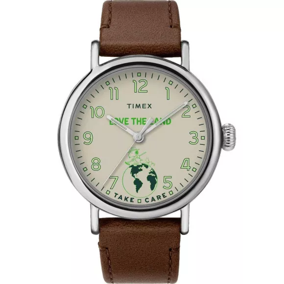 Timex® Analogue 'Standard X Peanuts Take Care' Men's Watch TW2V32800 reflects a balance between playful design and professional elegance, making it perfect for the modern man. The collaboration with Peanuts brings a light-hearted whimsy while ensuring that functionality remains paramount. This casual timepiece, at its core, is designed with a quartz movement that guarantees precision in every tick. The brass case, colored in a polished silver, measures a robust 40mm in diameter and 9mm in thickness, achieving a striking silhouette that appeals to men who appreciate both style and substance. The beige dial strikes a harmonious chord with the character-driven design, protected by mineral glass that ensures visibility and durability. With a comfortable leather band in a rich brown hue, measuring 21cm in length and 19mm in width, this watch adapts seamlessly to the wrist, secured with a sturdy buckle clasp for reliable wear.Shop Timex TW2V32800 at Ormoda