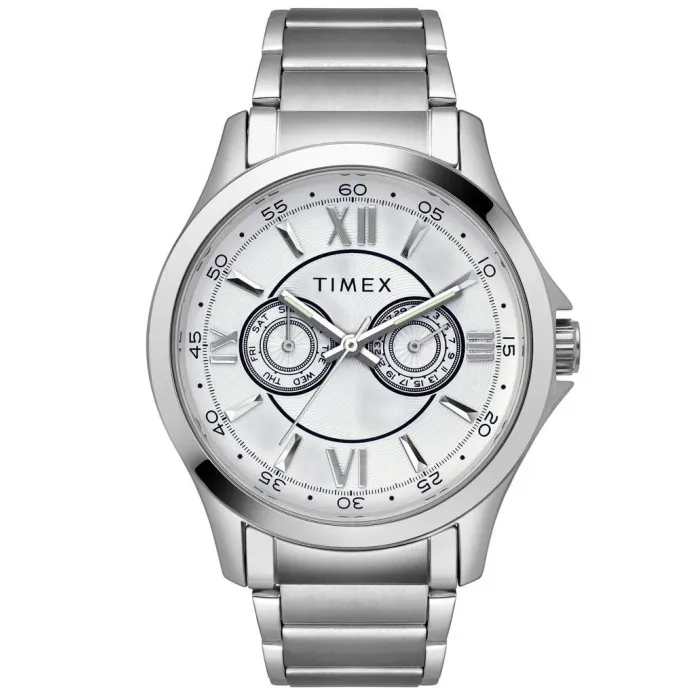 The Timex® Multi Dial Men's Watch TW2T44200 embodies the perfect combination of functionality and stylish design. Crafted with the modern man in mind, this casual timepiece boasts a sturdy silver stainless steel case, measuring a comfortable 42mm in diameter and 9mm in thickness. Its round case style is both classic and contemporary, ensuring it seamlessly fits into any daily wardrobe. The detail-oriented design features a sleek white dial, protected by durable mineral glass, reflecting a commitment to quality and legibility. This watch employs quartz movement, guaranteeing precision timekeeping and reliability. Beyond just telling time, this multi dial watch integrates a day-date calendar function, perfect for the professional man who values both practicality and sophistication. The striking silver band, crafted from stainless steel, is designed for comfort and style, measuring 21cm in length and 21mm in width. Its fold-over clasp ensures a secure fit, allowing you to wear it confidently through any occasion. Rated at 3 ATM, this timepiece withstands splashes of water, making it suitable for daily use without worry. With a lug-to-lug height of 49mm, the watch fits comfortably around your wrist while making a statement. Weighing in at just 112 grams, this attractive accessory feels substantial without being cumbersome. The Timex® Multi Dial Men's Watch TW2T44200 is a perfect blend of durability and elegance, ensuring you'll be both punctual and stylish, whether at the office or out on the weekend. Shop Timex TW2T44200 at Ormoda