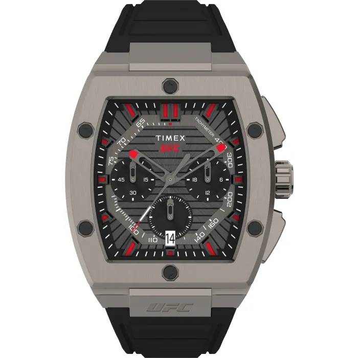 Timex has long been a trusted name in the world of watches, known for its commitment to quality, reliability, and innovation. Since its inception, Timex has catered to those who seek a blend of functionality and style in their wristwear. With a diverse range of collections tailored for various lifestyles, each Timex watch embodies a spirit of adventure and resilience. The brand is recognized for its dedication to creating timepieces that not only tell time but also complement the wearer's personal style. This dedication is evident in their craftsmanship and design philosophy, ensuring that every piece, including the Timex® Chronograph 'Ufc Animal Chrono', meets the dynamic needs of modern life. Their watches are crafted to withstand the rigors of daily wear while making a statement, a hallmark of Timex's philosophy and history in horology.