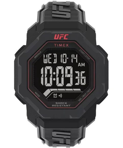 Timex has long been synonymous with reliable timekeeping and innovative design, creating watches that stand the test of time. With a rich history that dates back to 1854, this American brand has continuously evolved its craft, blending tradition with modern technology. The brand is particularly known for its resilience and quality, producing timepieces that appeal to both casual wearers and athletes alike. Timex watches are characterized by their diverse range, from classic, elegant faces to robust sport models. The brand's commitment to affordability without compromising on style or functionality makes it a favored choice among men who value performance and aesthetics in their everyday accessories. Particularly in the world of sports watches, Timex has established itself as a leading name, catering to the adventurous spirit of the modern man. Whether in the ring or out on the trail, Timex watches embody a philosophy of durability and precision, allowing every individual to embrace their unique journey. Introducing Timex® Digital 'Ufc Knockout' Men's Watch TW2V88100