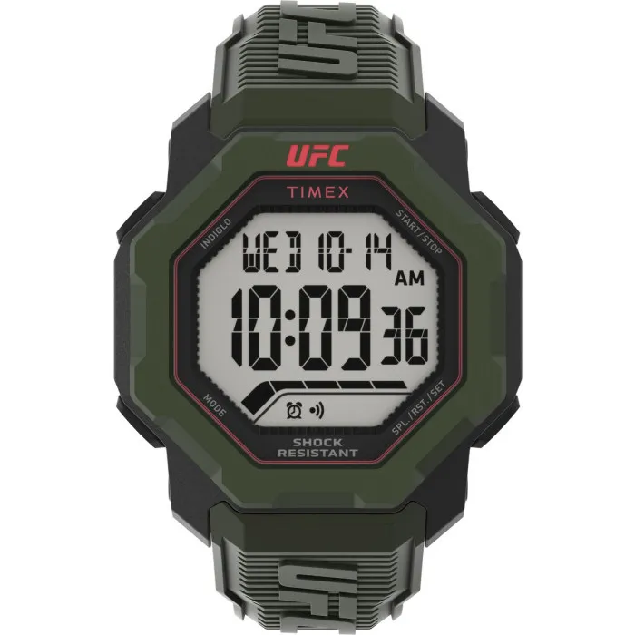 Timex stands as a beacon of precision and durability in the world of watches. With a rich history stretching back to its inception, the brand has perfected the balance between ruggedness and sophistication. Each timepiece is crafted with meticulous attention to detail, ensuring that they are not only aesthetically pleasing but also reliable under pressure. The Timex ethos is built on the idea that a watch should do more than tell time; it should enhance the wearer’s lifestyle and withstand the impossible. From sports models to classic designs, Timex has consistently pushed the envelope to innovate and excite, catering to the needs of those who lead dynamic lives. Embracing technology and tradition, the company's commitment to quality has made it a trusted choice for generations, turning ordinary moments into extraordinary experiences. The Timex name resonates with the spirit of adventure, inviting you to wear your ambitions on your wrist as you conquer new challenges.Introducing Timex® Digital 'Ufc Knockout' Men's Watch TW2V88300