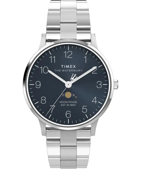 Timex stands as a beacon of innovation and quality in watchmaking, a legacy that has thrived since its inception in 1854. The brand's philosophy centers around crafting timepieces that offer reliability and affordability without compromising on style. Known for their durability and precise quartz movements, Timex watches cater to a wide array of consumers with varying tastes and functional needs. The Waterbury collection draws deep inspiration from the brand's roots in Waterbury, Connecticut, showcasing a mix of classic appeal and modern design techniques. With each piece, Timex continues to honor its commitment to craftsmanship, ensuring that every watch is not just a tool for keeping time but a statement of personal style. They have successfully combined practicality with elegance, making their watches not only reliable companions but also worthy fashion accessories. From their iconic designs to their seamless integration of advanced technology, Timex remains a trusted name for watch enthusiasts around the globe, consistently delivering products that meet the evolving tastes of its loyal customers.Introducing Timex® Analogue 'Waterbury Classic Moon Phase' Men's Watch TW2W75700