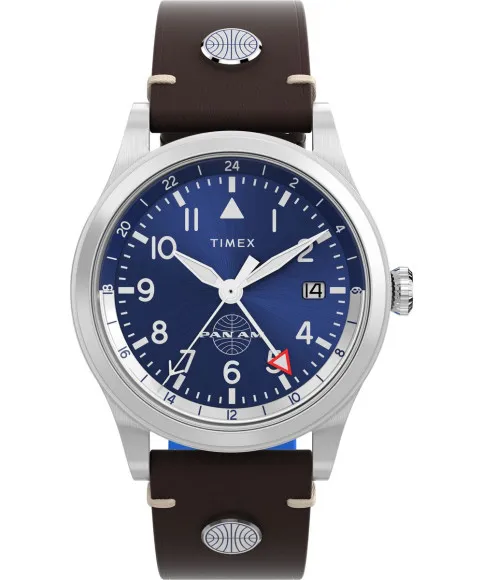 Timex has long been a brand synonymous with reliable timekeeping and classic design. Founded over 160 years ago, Timex has continually embraced innovation while maintaining a dedication to craftsmanship. The Waterbury collection is a tribute to the company’s rich history, blending modern aesthetics with a vintage touch. The Waterbury GMT x Pan Am stands out as a perfect representation of this heritage, offering not just a stylish appearance but also robust functionality for today’s discerning gentlemen. Inspired by the golden age of air travel, this timepiece echoes the adventurous spirit of its namesake airline, making it a perfect companion for both the modern man and the globetrotter. Making an impression while remaining effortless to wear, this watch is not merely an accessory but a statement of character and a reminder of the adventures ahead. The Timex® Analogue 'Waterbury GMT x Pan Am' Men's Watch TW2W97300 is the embodiment of style meeting practicality. With a 39mm stainless steel case and a thickness of 12mm, this watch exudes a rugged charm that makes it suitable for casual wear while still being polished enough for business settings. The blue dial is protected by mineral glass, ensuring durability and clarity. The watch features a date calendar for added convenience, allowing you to stay organized without compromising on style. The brown leather band, measuring 21cm long and 19mm wide, offers a comfortable fit secured with a classic buckle clasp. Its gentle contours and supple material add a touch of elegance, making it perfect for both everyday use and special occasions. Water-resistant up to 10 bars, the Waterbury GMT x Pan Am is designed to accompany you on all your adventures, from a swim in the pool to a business meeting. This versatile timepiece guarantees that you stay punctual while looking effortlessly sophisticated, establishing itself as a must-have accessory for the modern gentleman.Shop Timex TW2W97300 at Ormoda