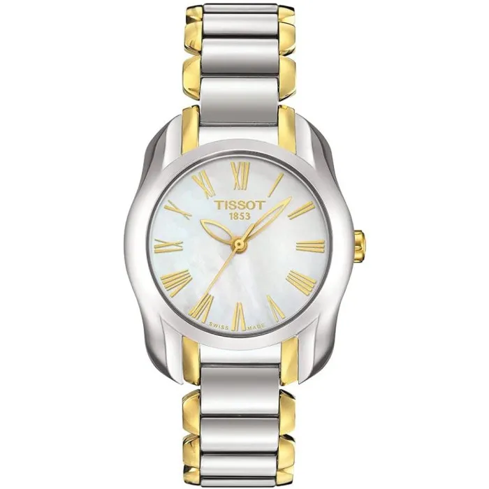 Tissot® Analogue 'T-wave' Women's Watch T0232102211300 exudes elegance and grace, creating a statement that transcends mere timekeeping. Inspired by the flowing lines of a wave, this watch captures the essence of femininity and sophistication. With a versatile dress style, it is a perfect companion for any occasion, whether it's an afternoon tea or an elegant dinner party. The stunningly crafted multicolour stainless steel case reflects light beautifully, ensuring all eyes are on you. At a modest 28mm in diameter and 8mm thick, the round case is both delicate and substantial, perfectly proportioned for a woman’s wrist. The enchanting mother of pearl dial adds a layer of luxury, subtly changing hues as it gleams under different lighting. Protected by sapphire glass, this dazzling dial is resistant to scratches and maintains its pristine appearance. The multicolour stainless steel band, measuring 19cm in length and 14mm in width, not only provides durability but also comfort and style, fastened securely with a reliable deployment clasp. With a water resistance of up to 3 bars, it is not only beautiful but also practical, allowing you to wear it with confidence in various settings. Transform your collection with the Tissot® Analogue 'T-wave' Women's Watch, where modern design meets timeless elegance. Shop Tissot T0232102211300 at Ormoda