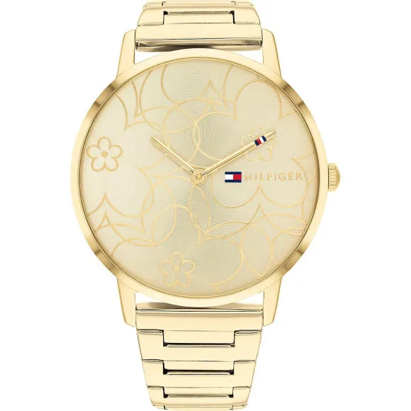 Crafted for the woman on the go, the Tommy Hilfiger 'Alex' timepiece is a tribute to understated luxury. Its 40mm round gold stainless steel case exudes a warm radiance, paired with a matching gold dial that shines with every turn of the wrist. The svelte 6mm case thickness makes this watch a subtle companion to any outfit, whether it's a power suit or a weekend dress. Encased under resilient mineral glass, the gold-tone dial showcases Tommy Hilfiger's penchant for simple, yet sophisticated design.