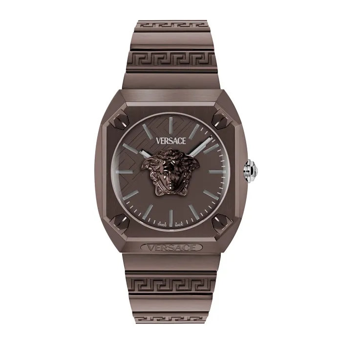 Embrace luxury and boldness with the Versace Analogue 'Medusa Antares' Men's Watch VE5P00426. This striking timepiece features a distinctive square case crafted from durable stainless steel, showcasing a sumptuous brown finish that exudes sophistication. With a diameter of 44mm and a thickness of 11.65mm, the design is not only robust but also refined, perfectly fitting the modern man's wrist. The watch face consists of sleek brown tones and is protected by sapphire glass, ensuring clarity and resilience against daily wear and tear. The quartz movement guarantees precise timekeeping, making the Medusa Antares not just a fashion statement but also a practical choice for those who appreciate practicality in elegance. The watch band, also made from stainless steel, complements the case beautifully and boasts a length of 21cm along with a width of 26mm, designed to provide both comfort and style. This timepiece comes equipped with a deployment clasp, ensuring a secure fit while adding a touch of sophistication. Water-resistant up to 5 bars, this watch is ready to accompany you on various adventures, whether you're at the office or out on the town. The Medusa Antares perfectly embodies the Versace ethos—combining art, luxury, and functionality into an exceptional accessory that enhances any outfit.Shop Versace VE5P00426 at Ormoda